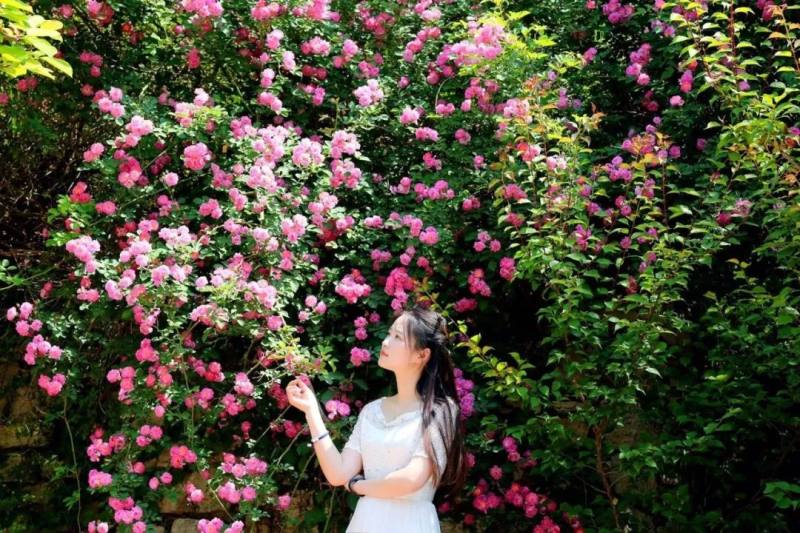 红叶谷中一簇簇的蔷薇花,盛开在仿若丝绒一般格外绿格外厚的叶墙上,远远望去犹如艳丽夺目的锦缎。格外得美丽,好一派欣欣向荣的景象。