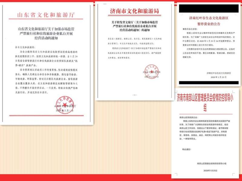 接到上级通知后,景区于1月25日立即闭园停止营业,通过张贴告示、微信公众号等方式向游客发布公告,并第一时间成立疫情处置工作领导小组,统筹开展疫情防控处置工作的组织协调、联络沟通、隐患排查、应急处理、宣传引导等工作。